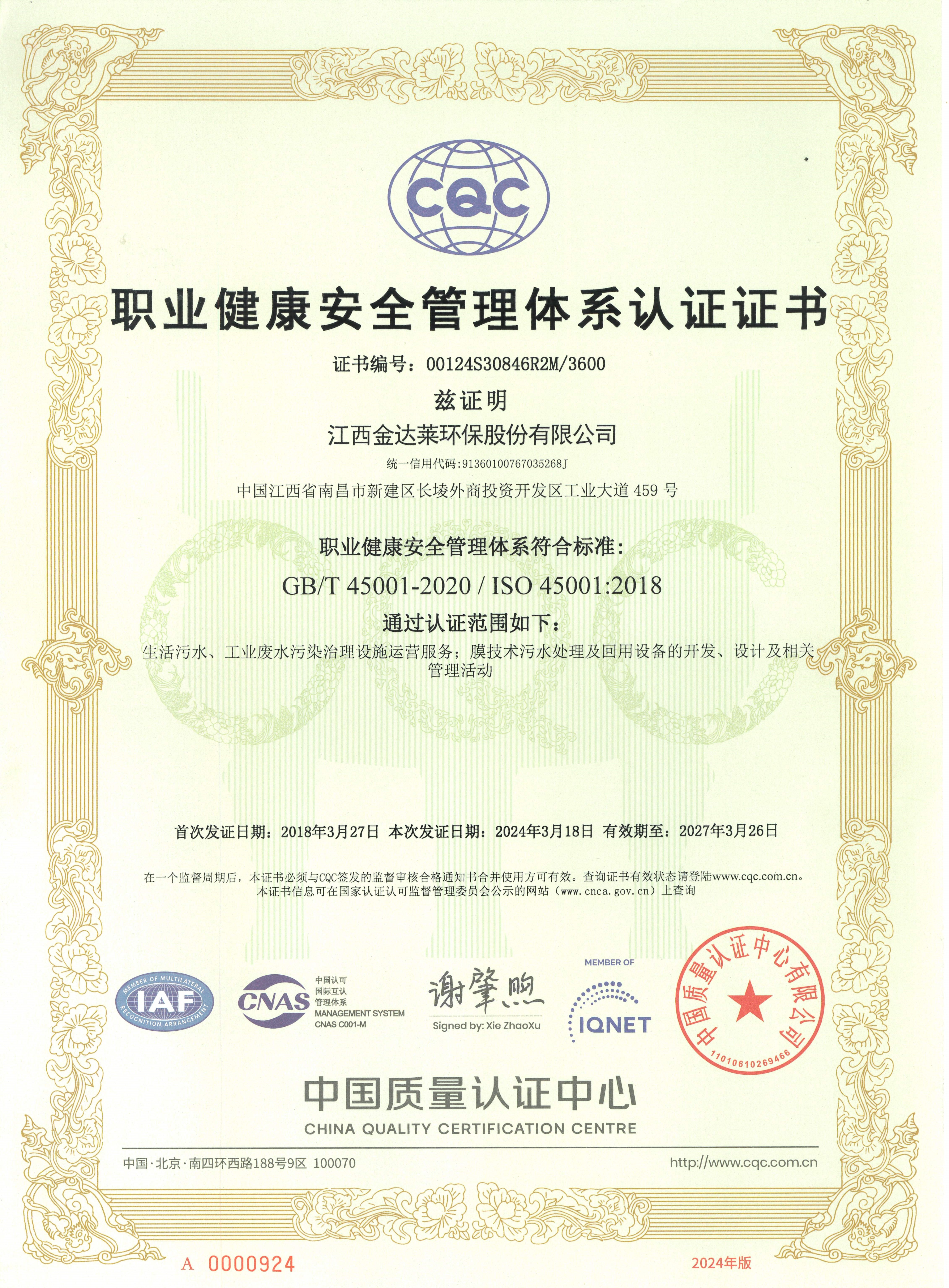 職業健康安全管理體系認證