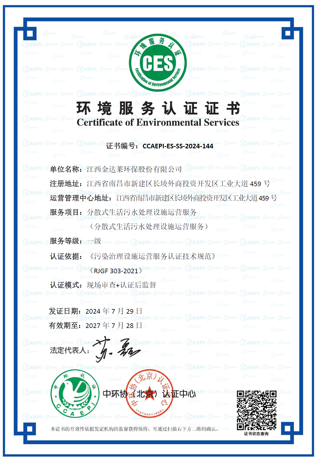 分散式生活污水處理設施運營服務一級